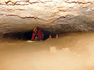 El dimarts al matí anem a Rubicera, (passem per davant de la Cascada del Asón, que amb les últimes pluges està espectacular) per localitzar la ruta per fer la travessa Rubicera-Mortero, sempre mirant la previsió del temps, després de 1 hora d'aproximació arribem a la boca, ens endinsem en ella per una gran galeria d'entrada, cap al "Pas de la Licuadora" mentre anem posant reflectants per tal de facilitar la tornada. Mentre avancem anem trobant unes senyals que semblen portar-nos pel bon camí ( tot i anar amb la brúixola i la topo a la mà durant molta estona perdem de vista les senyals,) quan les tornem a trobar veiem que hem arribat a on volíem per un lloc diferent. Estem al "Pozo del Chocolate" que és el lloc a on pensàvem arribar. Ja que estem aquí, decidim baixar-lo( be jo dic de baixar-lo i el Subi segueix, jajaja) i continua fins la connexió amb el riu. Al poc comencem a sentir un soroll ensordidor a mida que ens atansem, veiem que el riu baixa amb molta aigua i això ens far decidir de no fer la travessa,però només arribar fins aquí ja val la pena. Mitja volta i cap a fora. Al sortir anem mirant les galeries a on ens hem despistat a l’entrar.